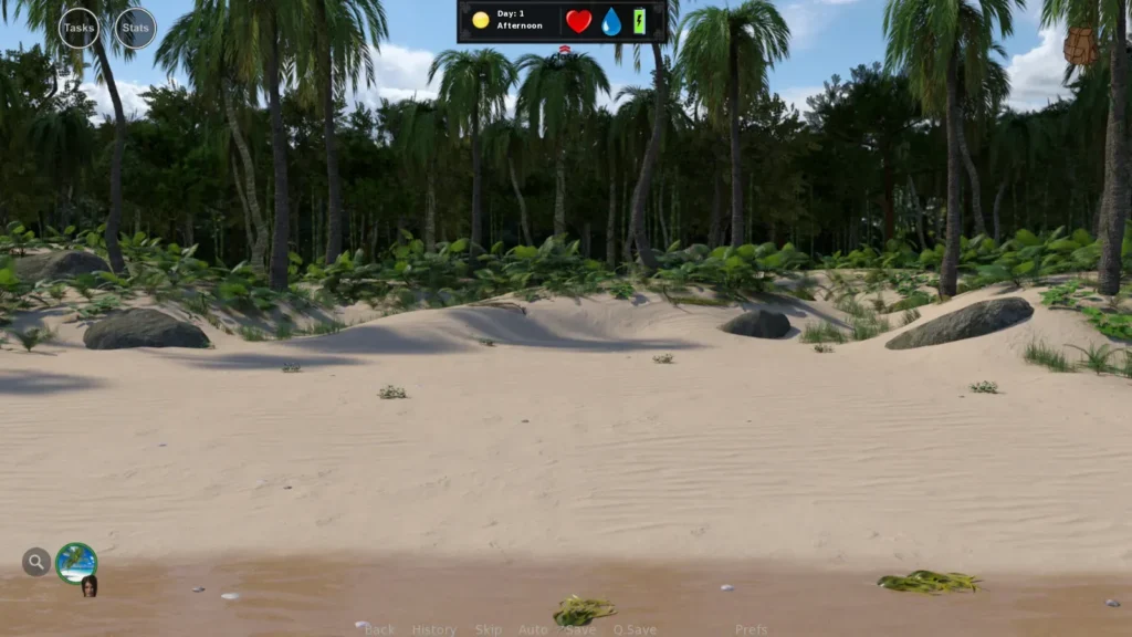 Explore the island, survive, and build relationships in Stranded Dick